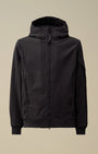 Hooded jacket crafted in C.P. Shell-R, a recycled multifilament 3-layer softshell stretch. Made from recycled Polyester yarn, certified by the Global Recycled Standard (GRS). The jacket features an adjustable hood, a two-way full zip fastening, side zip pockets, and C.P. Company’s iconic Lens. Ribbed cuffs and back hem complete the design. Bonded for a water column of 5000mm, offering windproof protection with anti-drop treatment. Regular fit.