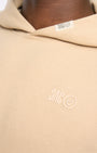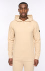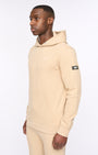 A soft pullover hoodie with a raised chest print. Features cut & sew sleeve panels, a kangaroo pocket, and ribbed hem & cuffs. Perfect to wear with jeans for a stylish outfit.